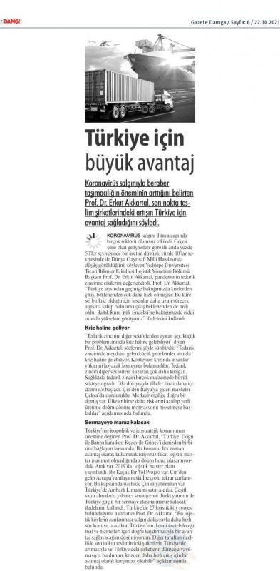 Türkiye’de 27 lojistik köy projesi bulunduğunu hatırlatan Prof. Dr. Akkartal, “Bu lojistik köylerin canlanması salgın dolayısıyla daha hızlı söz konusu olacaktır. Türkiye’nin, kendi üretebileceği mal ve hizmetleri içeri doğru kaydırmasıyla bir avantaj sağlayacağını düşünüyorum. Diğer taraftan özellikle son nokta teslimindeki şirketlerin Türkiye’de artmasıyla ve Türkiye’deki şirketlerin dünyaya yayılmasıyla bu durum, krizden daha hızlı çıkış için bir avantaj olarak karşımıza çıkabilir” diye konuştu.