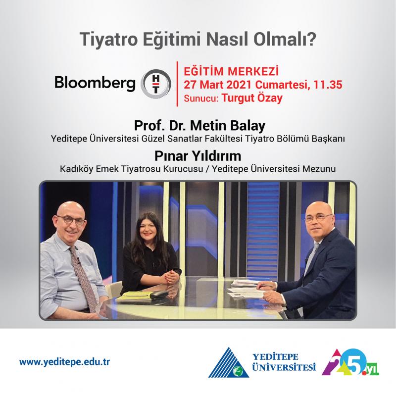 Yeditepe Üniversitesi Güzel Sanatlar Fakültesi Tiyatro Bölümü Başkanı Prof. Dr. Metin Balay ile Yeditepe Üniversitesi mezunu ve Kadıköy Emek Tiyatrosu Kurucusu Pınar Yıldırım, 27 Mart 2021 Cumartesi, saat 11.35’te, Eğitim Merkezi’nde Turgut Özay’ın sorularını yanıtlıyor. Prof. Dr. Balay ve Yıldırım, 27 Mart Dünya Tiyatro Günü’nde, tiyatroya ve tiyatro eğitimine dair görüşlerini paylaşıyor.