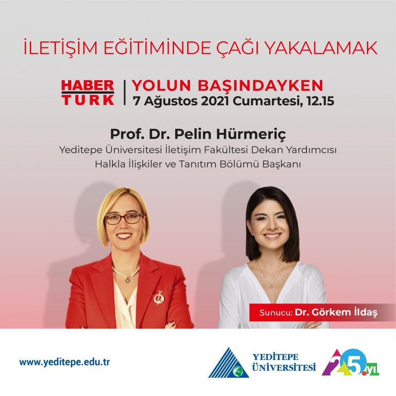 Yeditepe Üniversitesi İletişim Fakültesi Dekan Yardımcısı ve aynı zamanda Halkla İlişkiler ve Tanıtım Bölümü Başkanı Prof. Dr. Pelin Hürmeriç, 7 Ağustos 2021, Cumartesi günü, saat 12.15’te, Habertürk televizyonunda yayınlanan Yolun Başındayken programında, Dr. Görkem İldaş'ın konuğu oluyor. Prof. Dr. Hürmeriç, iletişim eğitiminde günümüzdeki gelişmeler konusunda bilgiler aktarırken iletişim fakültelerinde eğitim biçimlerinin çağı yakalaması için nasıl bir yol izlenmesi gerektiğine dair görüşlerini paylaşıyor.