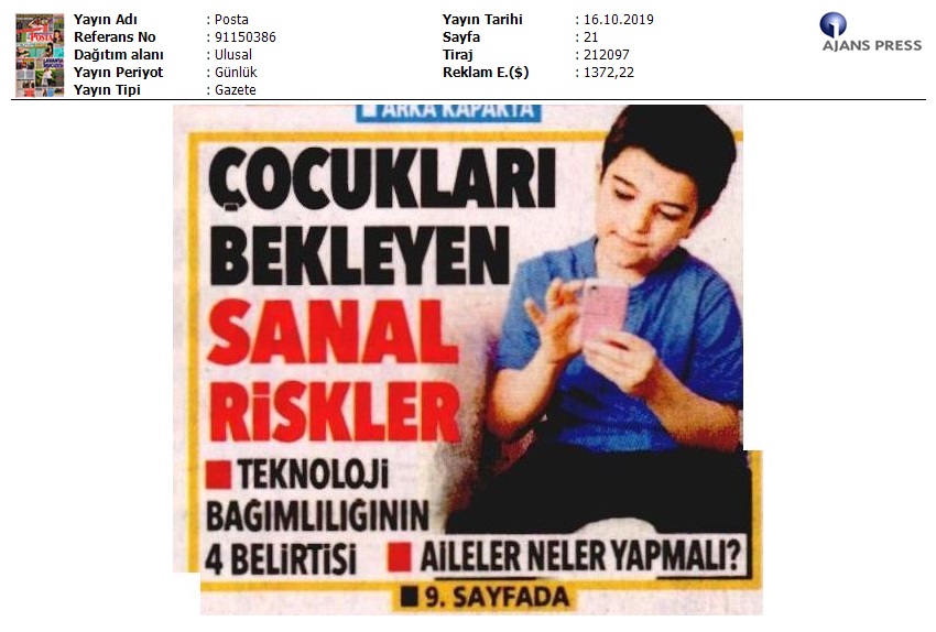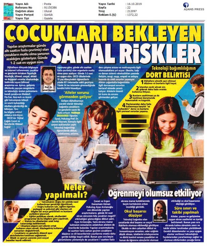 Eğitim Bilimleri Enstitüsü Müdürümüz, Eğitim ve Öğretim Psikoloğu Prof. Dr. Servet Bayram, çocuklarda ve gençlerde bilgisayar, internet ve sosyal medya kullanımının getirdiği riskleri Posta gazetesine değerlendirdi.