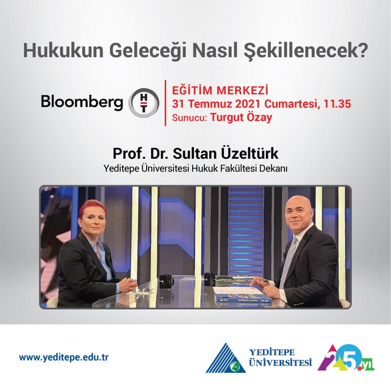 Yeditepe Üniversitesi Hukuk Fakültesi Dekanı Prof. Dr. Sultan Üzeltürk, 31 Temmuz Cumartesi günü, saat 11.35’te, Eğitim Merkezi programında, Turgut Özay’ın sorularını yanıtlıyor. Prof. Dr. Sultan Üzeltürk, programda hukuk eğitiminin günümüzde ve gelecekte neleri gerektireceği, hukukun geleceğinin nasıl şekilleneceğine dair görüşlerini paylaşıyor.