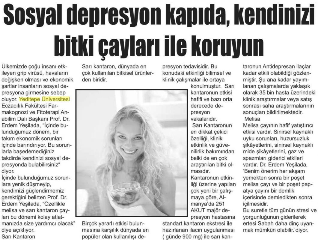Yeditepe Üniversitesi Eczacılık Fakültesi Farmakognozi ve Fitoterapi Anabilim Dalı Başkanı Prof. Dr. Erdem Yeşilada, sosyal depresyondan bitki çaylarıyla nasıl uzaklaşabileceğimizi anlattı.