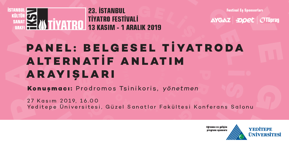Yeditepe Üniversitesi program kapsamında, festival programında yer alan ve Yunanistan’da yaşayan beş göçmen kadının gerçek hikâyelerinin anlatıldığı “Clean City (Temiz Şehir)” isimli oyunun yönetmeni Prodromos Tsinikoris’i, “Belgesel Tiyatroda Alternatif Anlatım Arayışları” panelinde ağırlayacak. Panel, 27 Kasım’da, saat 16.00’da, üniversitenin Güzel Sanatlar Fakültesi Konferans Salonu’nda gerçekleştirilecek.