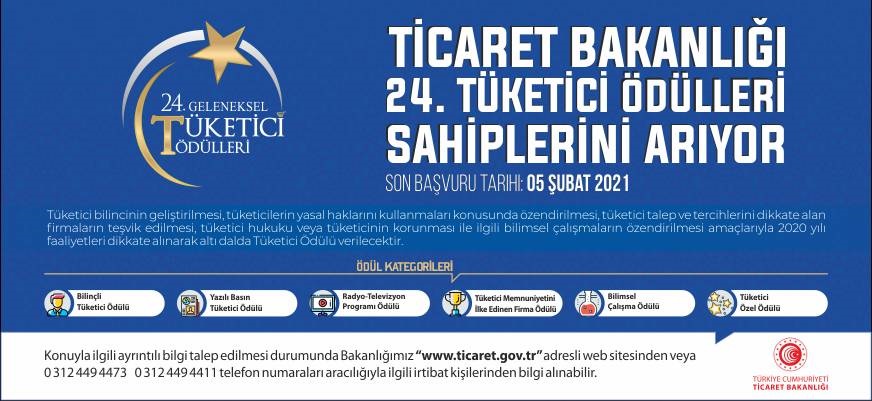 2020 yılı faaliyetlerine göre verilecek olan “24. Tüketici Ödülleri” hakkında detaylı bilgi için Ticaret Bakanlığı web sitesini ziyaret edebilirsiniz.