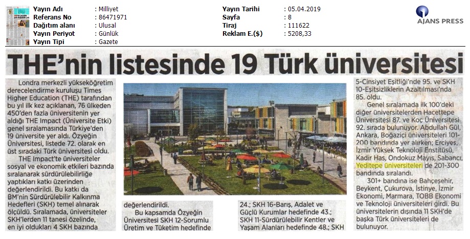 Times Higher Education (THE) 'Dünya Üniversiteleri Etki Sıralamaları Açıklandı'