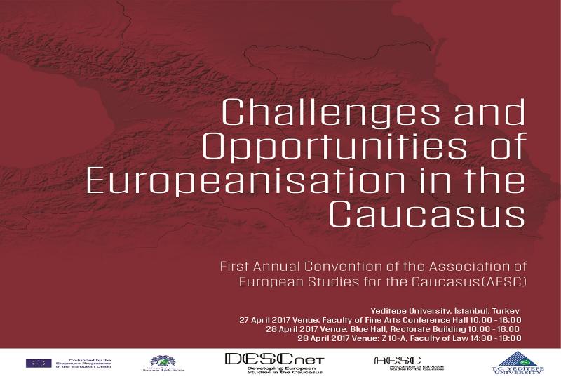 27-28 Nisan 2017 tarihlerinde, AESC (Association of European Studies for the Caucasus) ilk yıllık kongresini Yeditepe Üniversitesi yerleşiminde gerçekleştirecektir. Challenges and Opportunities of Europeanisation in the Caucasus başlıklı kongre, aralarında Türkiye ve Yeditepe Üniversitesi’nin de bulunduğu, yedi farklı ülkeden dokuz üniversitenin ortaklığıyla kurulan DESCnet (Developing European Studies in the Caucasus) adlı ağın ortak projeleri kapsamında yapılacaktır. Kongre programını ekte bulabilirsiniz.