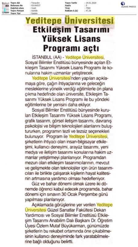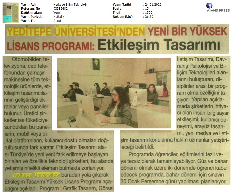 Etkileşim Tasarımı Yüksek Lisans Programı ile Yeditepe Üniversitesi, şirketlerin ihtiyacı olan insan-bilgisayar etkileşimi, kullanıcı deneyimi, arayüz tasarımı, yeni medya ve iletişim tasarımı konularına hakim uzmanlar yetiştirmeyi planlanıyor.